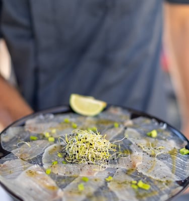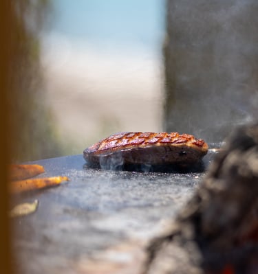 Sur la plage du Neptune, nous cuisinons des viandes fraîches au brasero, avec une carte courte et changeante.